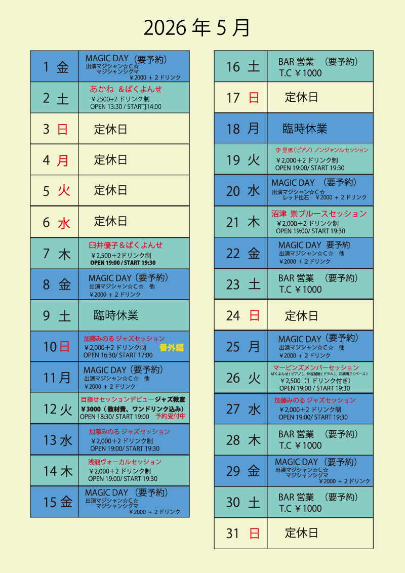 5月カレンダー